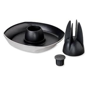Poultry roaster includes a non-stick roasting pan, infuser, and infusion cap. First, fill the base cup with your favorite beverage and add spices for extra zip (do not use with alcoholic spirits, though—they are volatile and will catch fire!). Next, place the infuser over the base cup and perch the bird on the infuser. Place the infusion cap in the neck cavity and set the poultry roaster on the cooking grate. Aromatic steam rises to roast ... Read More...